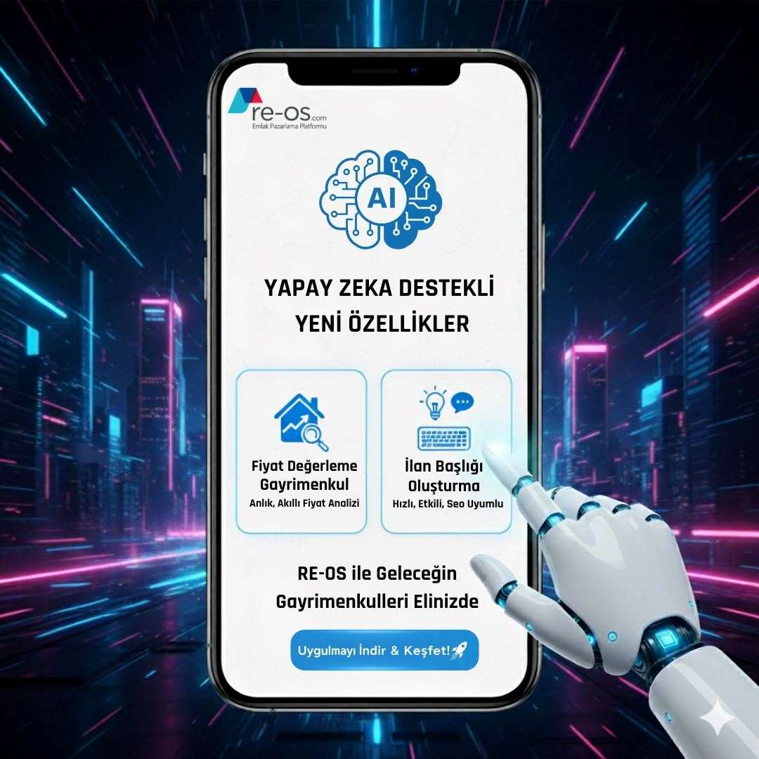 REOS’un geliştirdiği Gerçek Yapay Zekâ Destekli Fiyat Tahmini özelliği ile artık yalnızca birkaç saniyede, bölgesel verilerle desteklenen profesyonel fiyat önerilerine ulaşabilirsiniz.