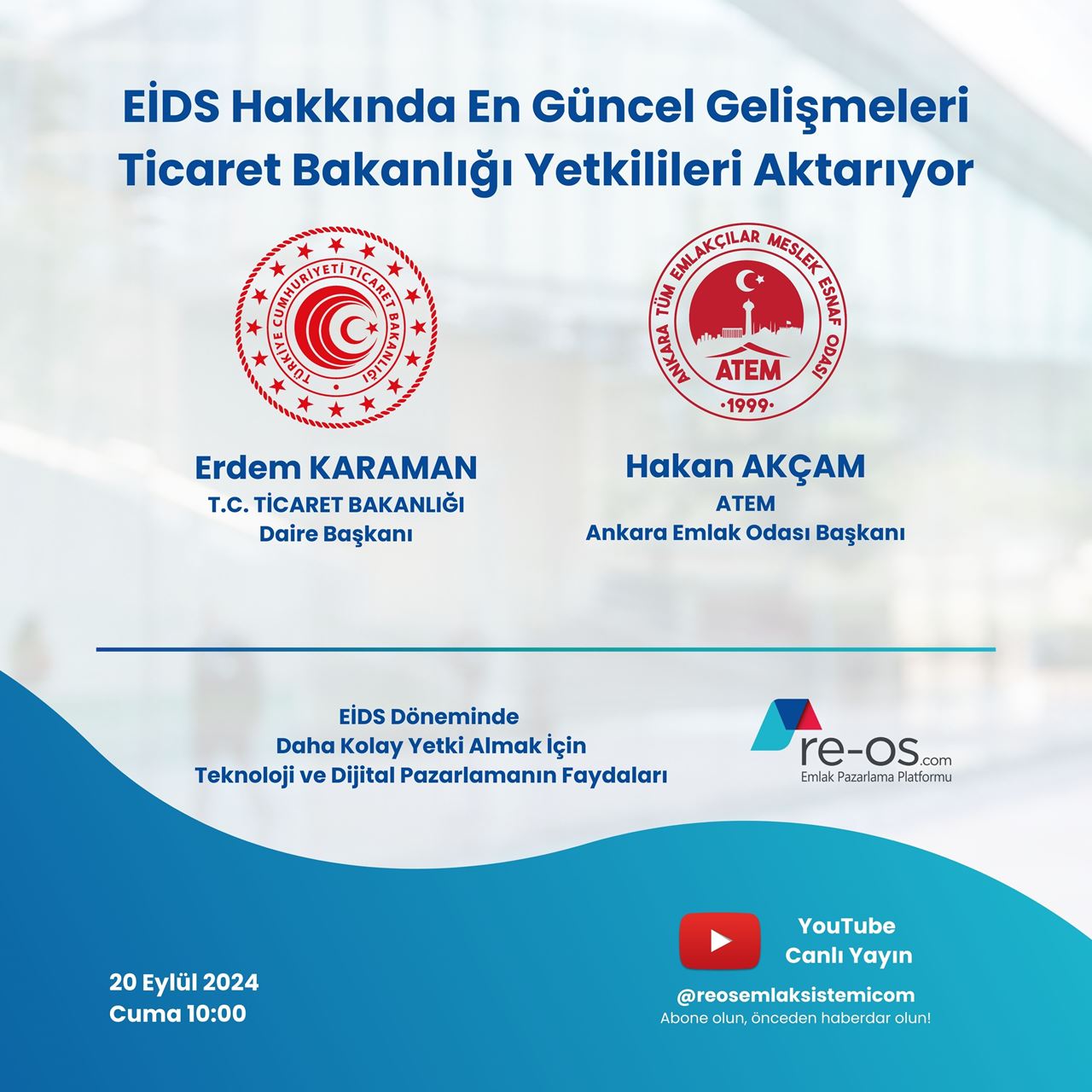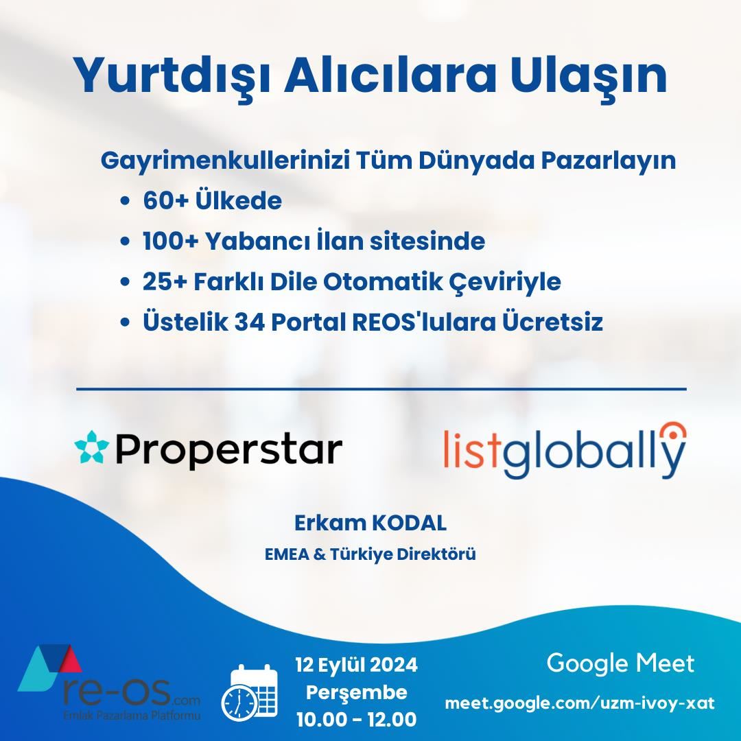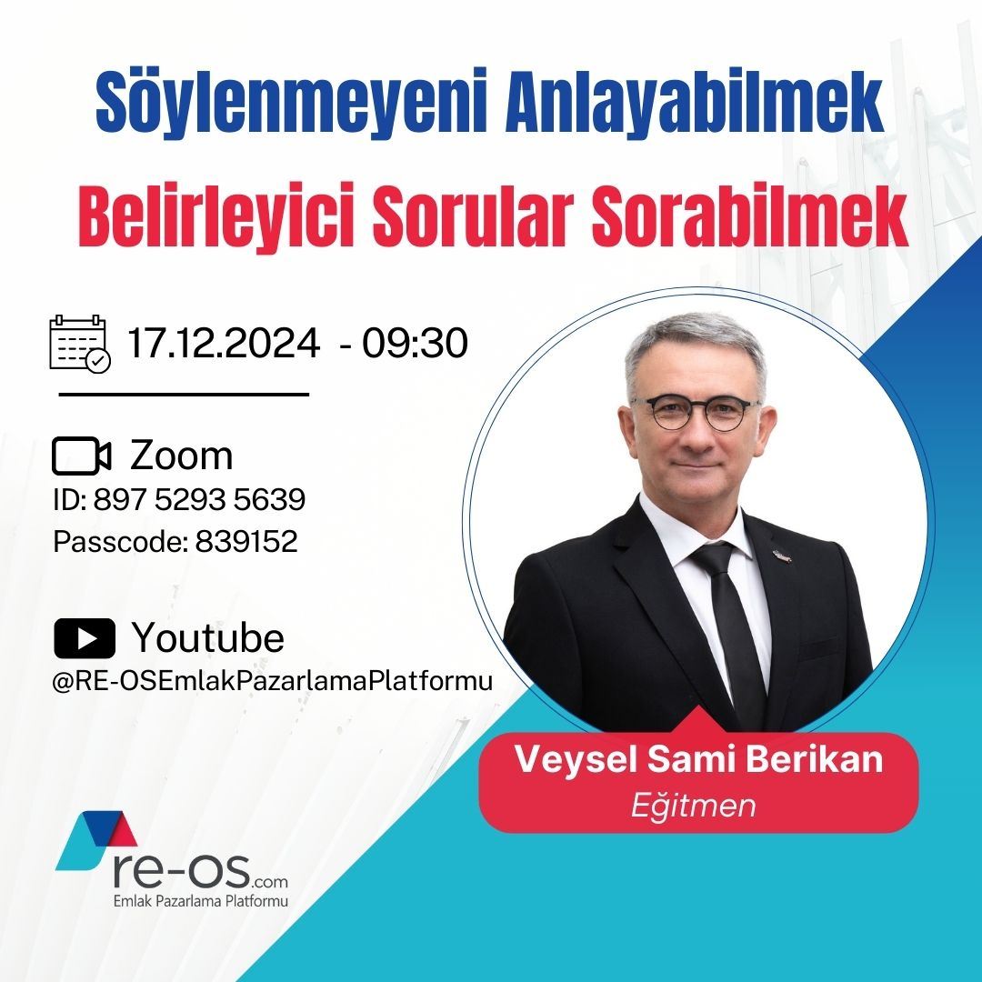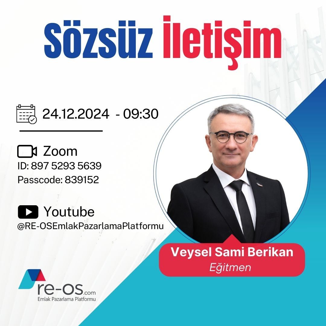 28 Kasım 2024 Perşembe, saat 09:30’da gayrimenkul danışmanlığı alanında uzun yıllardır aktif yöneticilik yapan ve markalara çok sayıda eğitimler vermiş Sn. Erdoğan PARLAKOĞLU, RE-OS.com eğitim seriler...