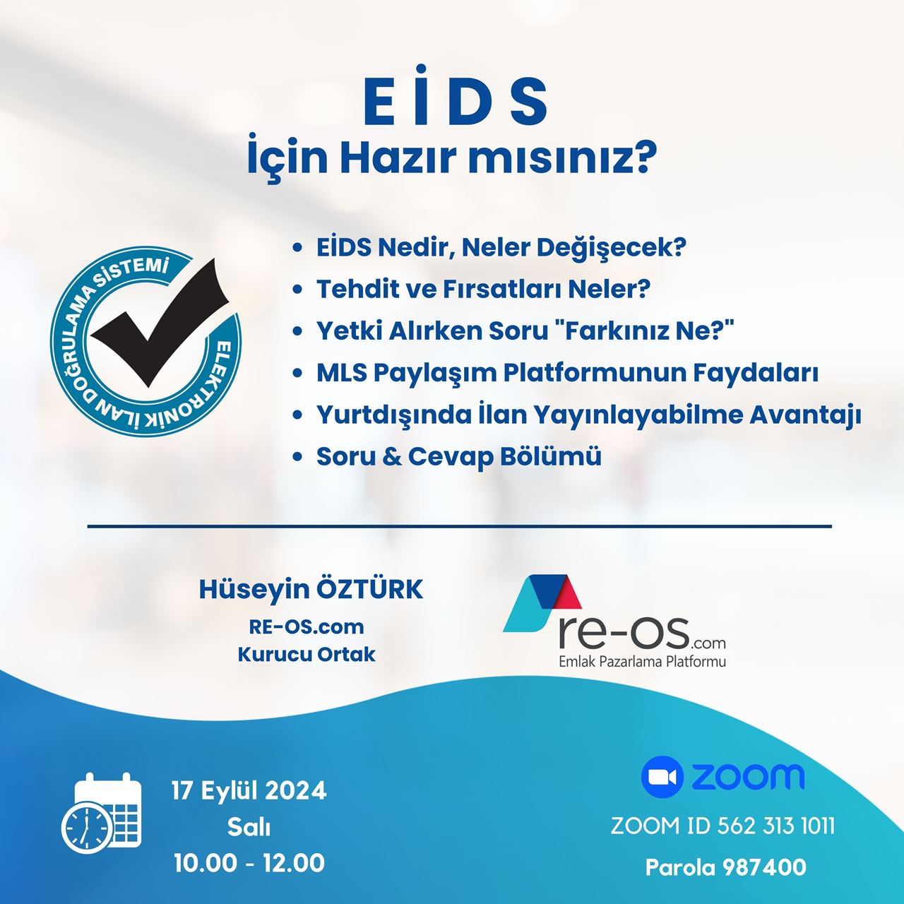 RE-OS.com Emlak Yönetim Sistemi tarafından düzenlenen webinarlardan biri daha 5 Mayıs 2021 Çarşamba, Saat 14:00 Facebook Canlı Yayın olarak gerçekleşti. Webinar konuğumuz, İZEKO İzmir Emlak Komisyonc...