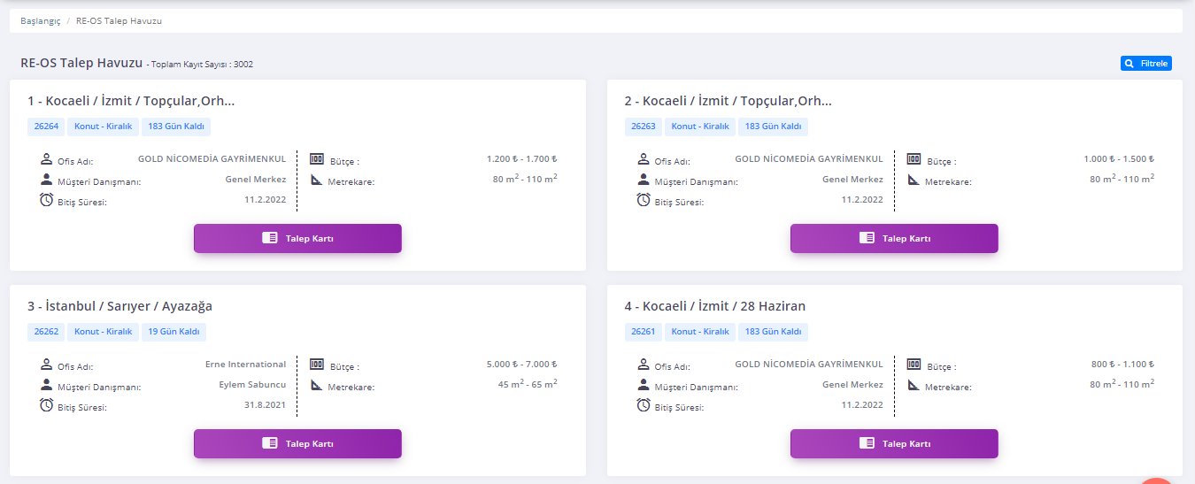 Porföy & Talep Havuzu, gayrimenkul portföylerinizi ve müşterilerinizin gayrimenkul taleplerini, diğer gayrimenkul profesyonellerinin içinde bulunduğu «Portföy & Talep Havuzu» içinde eşleştirip daha hızlı ve kolay şekilde kazanç elde etmenize yarar.